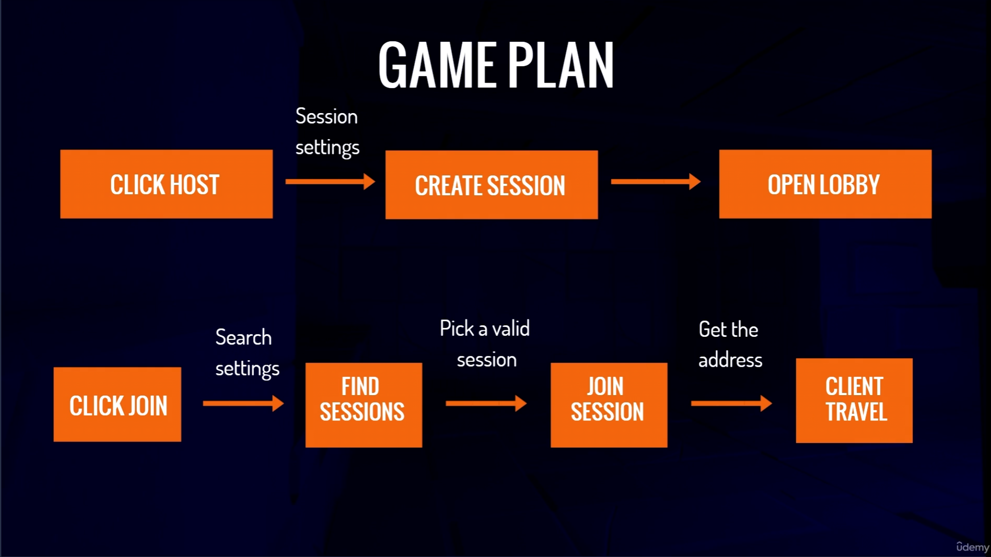 -> 언리얼 엔진의 Online Subsystem이 이를 도와줌. (이 코스의 목표는 다른 유저들이 IP 주소 없이도 로그인할 수 있는 겡미을 만드는 것) 또한 스팀, Xbox Live, 페이스북 게이밍등과 같은 서비스와 연결한다.