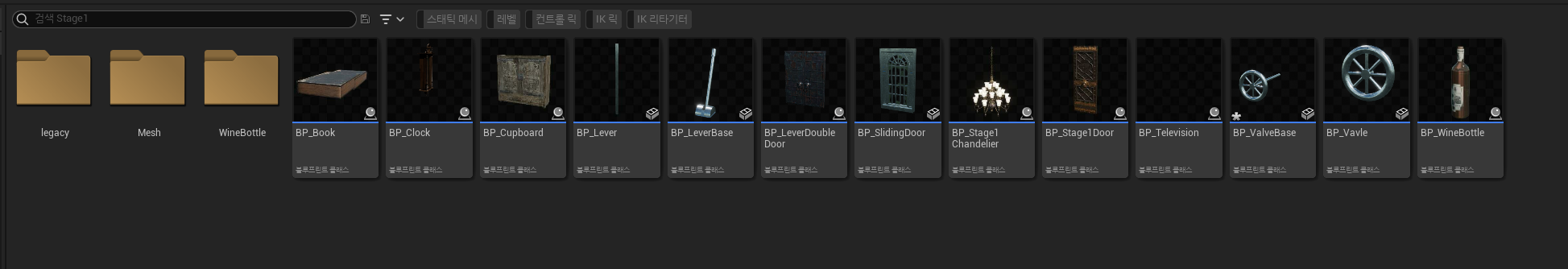 Stage1을 중심으로 여러 기믹 역할을 할 Actor(밸브, 래버, 문, 병 등)을 제작하였음.