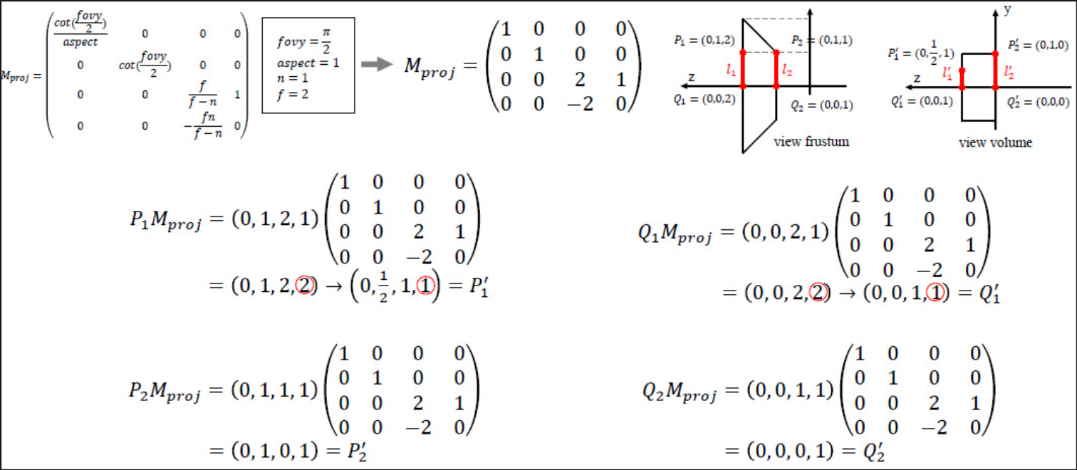 - 클립 공간은 표준화된 정육면체(DirectX 기준: : -w <= x, y, <= w, 0 <= z <= w 로 정의된다.