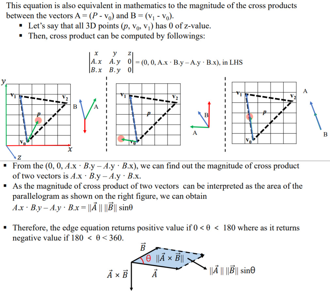 Edge equation 주어진 점이 선분을 기준으로 어느쪽에 있는지 확인한다.