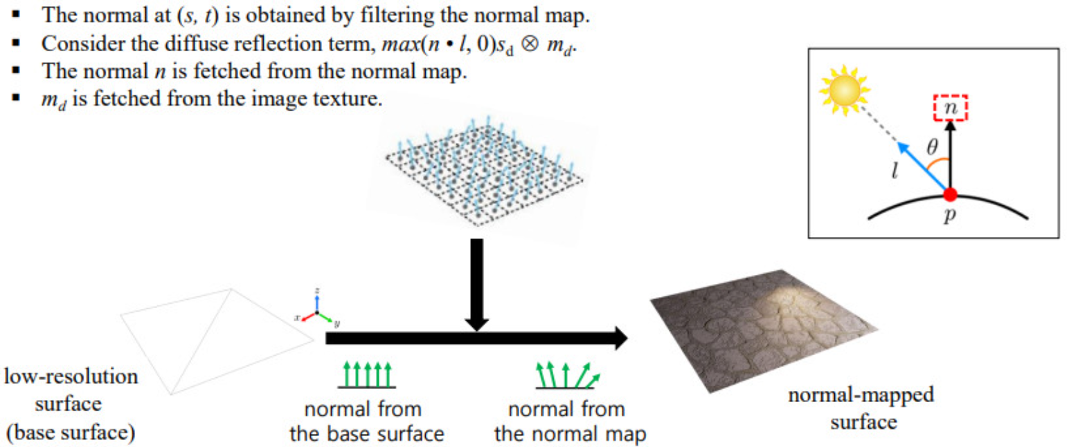 Rasterized된 Polygon mesh와 Textrue 좌표를 통해 Normal map에 접근한다.