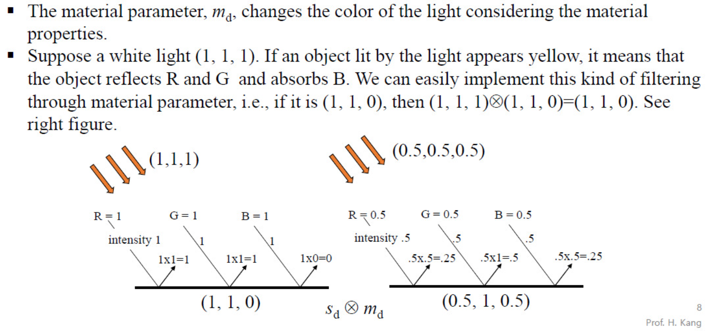 - 광원의 색상 (Color) 및 강도 (Intensity)