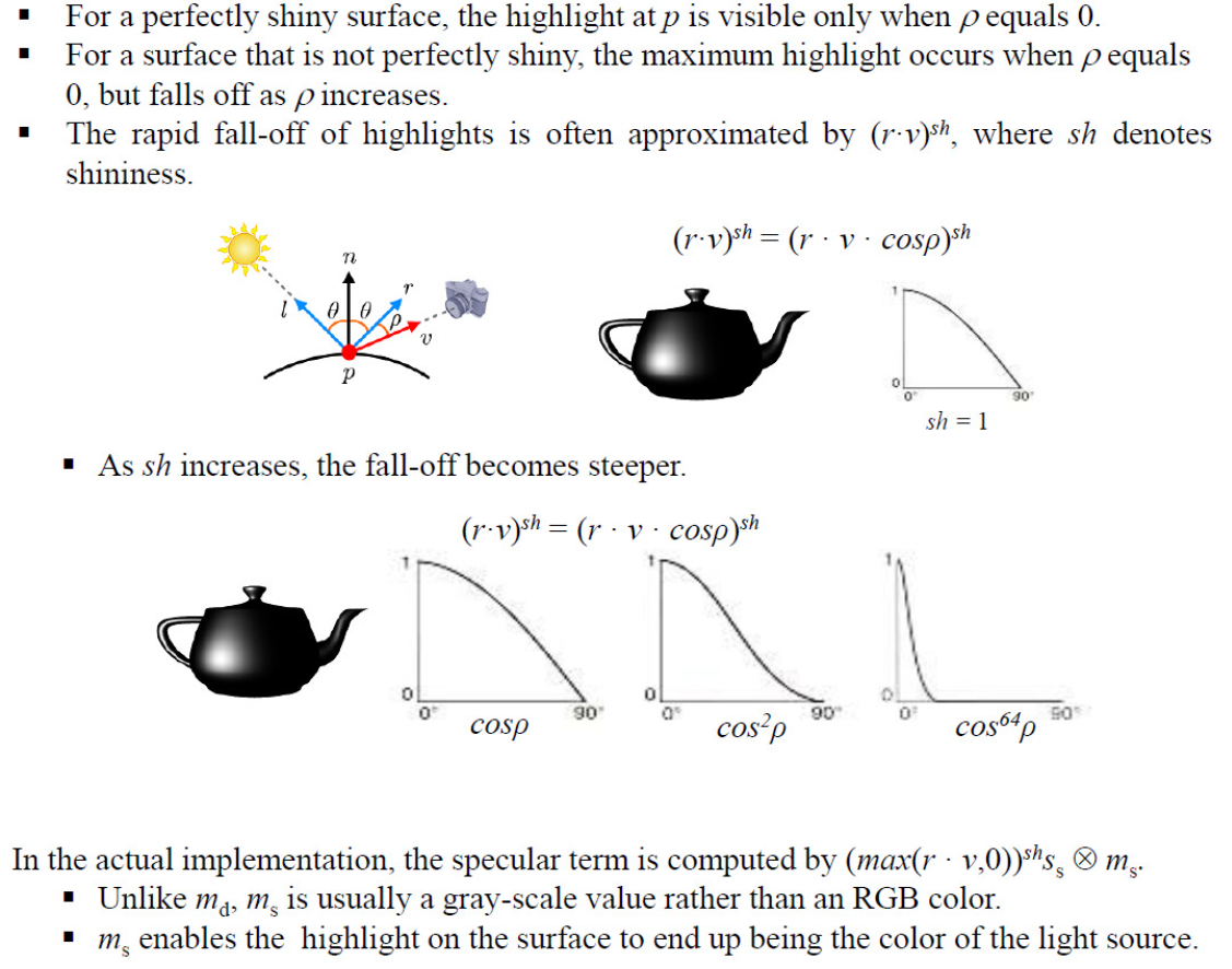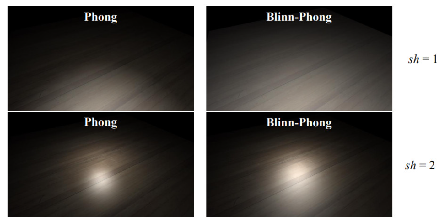 - 하이라이트의 집중도는 재질의 '광택(Shininess, sh)' 값으로 제어한다.